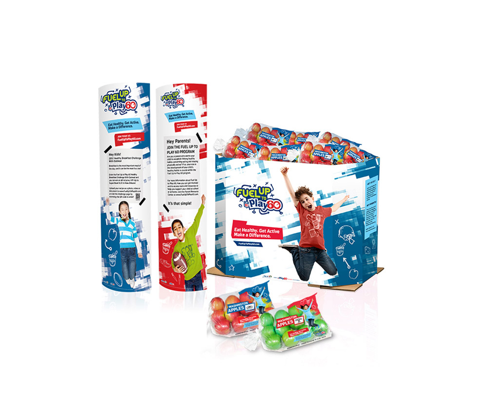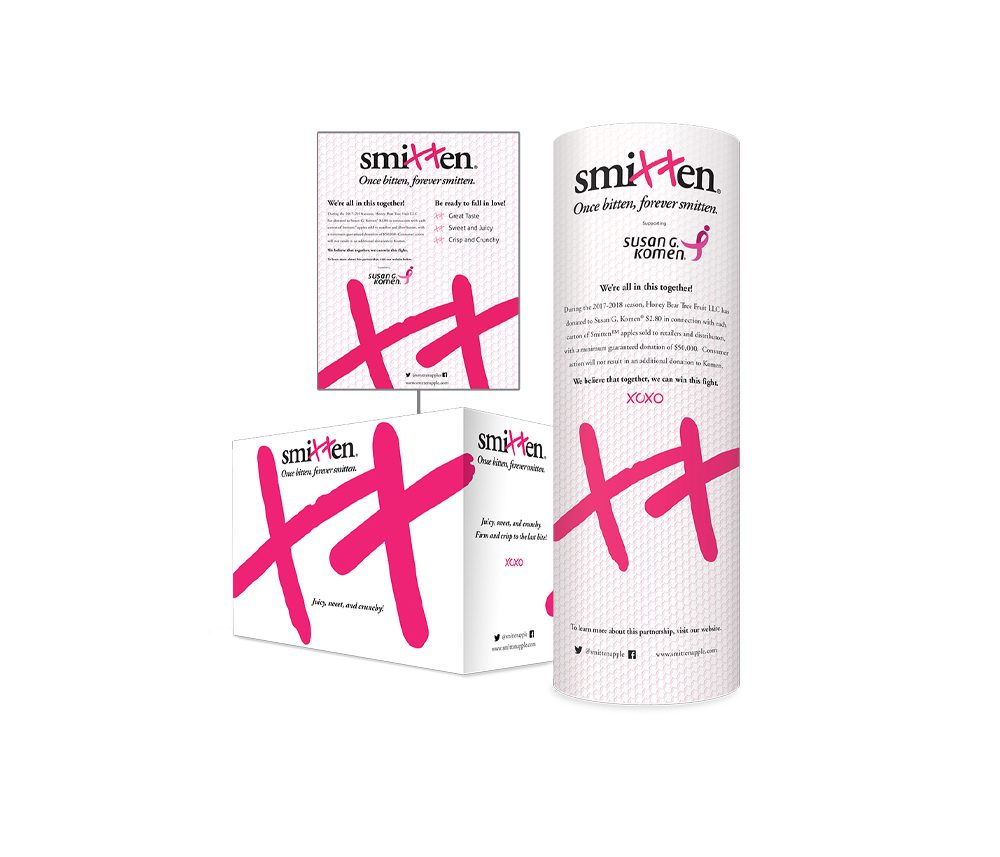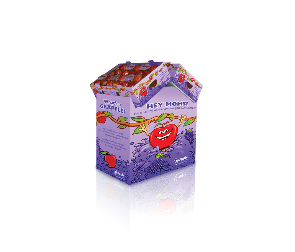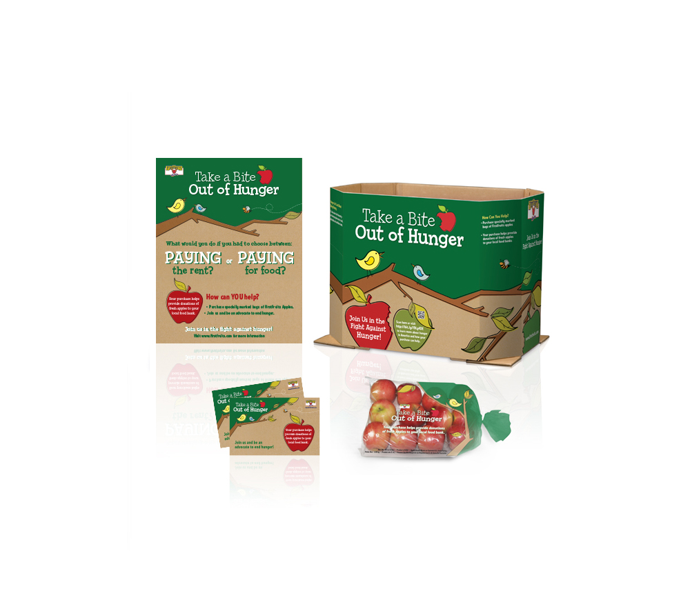 Firstfruit Marketing – Sweetie Apples – Merchandiser Display, Quarter Bin, Apple Sticker, & POS Card